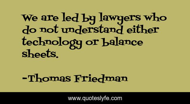 This page presents the quote "We are led by lawyers who do not understand either technology or balance sheets.". Author of this quote is Thomas Friedman. This quote is about balance, lawyers, legal,.