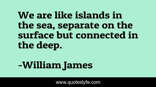 "William James Quotes." Quoteslyfe.com, 2025. Fri. 05 Dec. 2025. <https://www.quoteslyfe.com/quote/We-are-like-islands-in-the-sea-50065>.