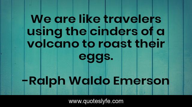 This page presents the quote "We are like travelers using the cinders of a volcano to roast their eggs.". Author of this quote is Ralph Waldo Emerson. This quote is about eggs, humans, language, nature,.