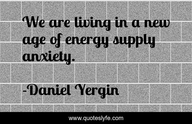 This page presents the quote "We are living in a new age of energy supply anxiety.". Author of this quote is Daniel Yergin. This quote is about living, energy, anxiety,.