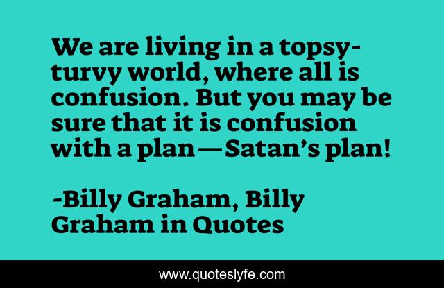 This page presents the quote "We are living in a topsy-turvy world, where all is confusion. But you may be sure that it is confusion with a plan—Satan’s plan!". Author of this quote is Billy Graham, Billy Graham in Quotes. This quote is about devil, satan, billy-graham,.
