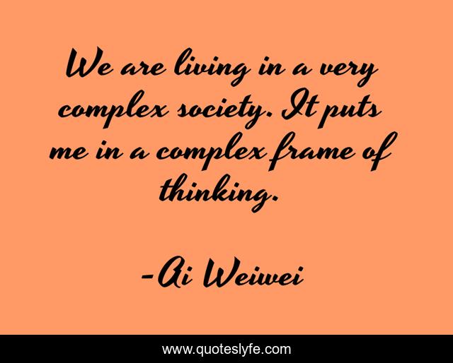 This page presents the quote "We are living in a very complex society. It puts me in a complex frame of thinking.". Author of this quote is Ai Weiwei. This quote is about living, life, art, complexity, society, meaning,.