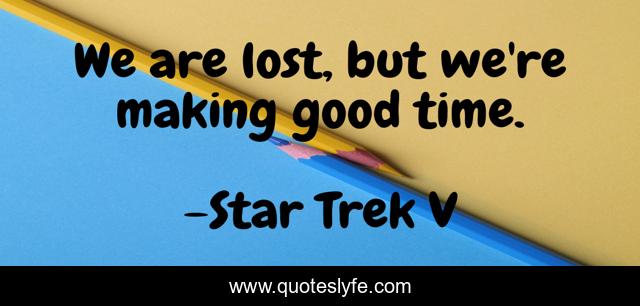 This page presents the quote "We are lost, but we're making good time.". Author of this quote is Star Trek V. This quote is about efficiency, leadership, goal-setting,.
