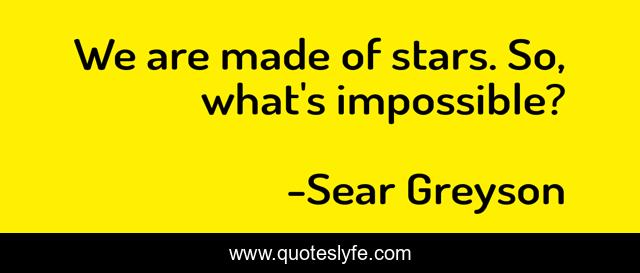 "Sear Greyson Quotes." Quoteslyfe.com, 2025. Mon. 08 Dec. 2025. <https://www.quoteslyfe.com/quote/We-are-made-of-stars-So-what-15213>.