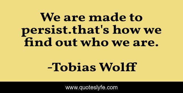 This page presents the quote "We are made to persist.that's how we find out who we are.". Author of this quote is Tobias Wolff. This quote is about trial, persistence,.