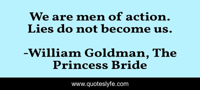 This page presents the quote "We are men of action. Lies do not become us.". Author of this quote is William Goldman, The Princess Bride. This quote is about men-of-action, lies, the-princess-bride,.