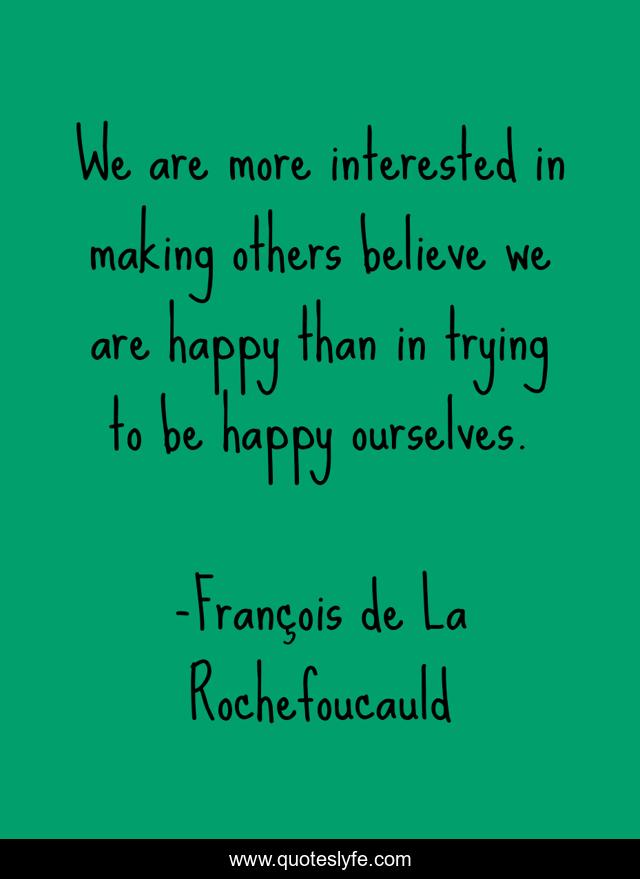 This page presents the quote "We are more interested in making others believe we are happy than in trying to be happy ourselves.". Author of this quote is François de La Rochefoucauld. .
