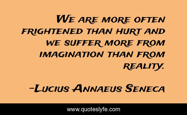 This page presents the quote "We are more often frightened than hurt and we suffer more from imagination than from reality.". Author of this quote is Lucius Annaeus Seneca. This quote is about suffer, reality, hurt,.
