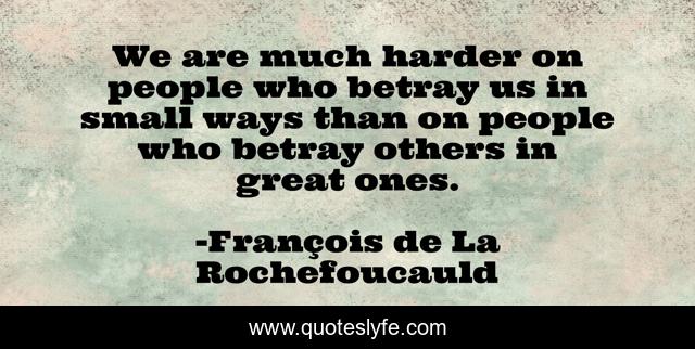 This page presents the quote "We are much harder on people who betray us in small ways than on people who betray others in great ones.". Author of this quote is François de La Rochefoucauld. .