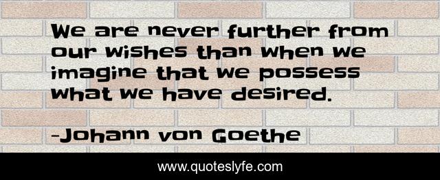 This page presents the quote "We are never further from our wishes than when we imagine that we possess what we have desired.". Author of this quote is Johann von Goethe. .