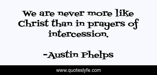 This page presents the quote "We are never more like Christ than in prayers of intercession.". Author of this quote is Austin Phelps. .