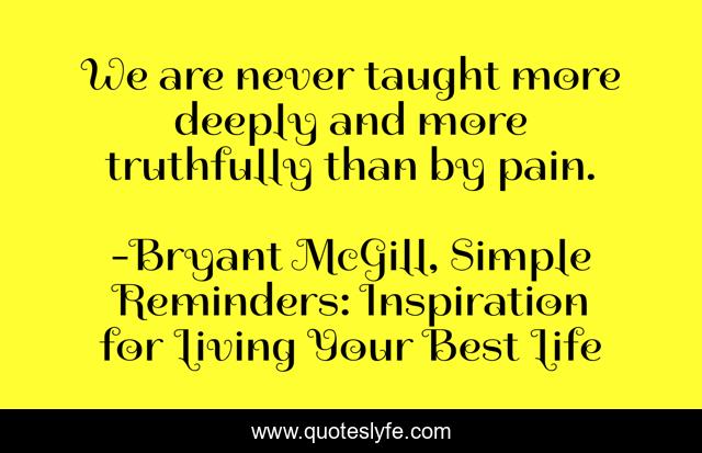 "Bryant McGill, Simple Reminders: Inspiration for Living Your Best Life Quotes." Quoteslyfe.com, 2025. Fri. 05 Dec. 2025. <https://www.quoteslyfe.com/quote/We-are-never-taught-more-deeply-and-198729>.