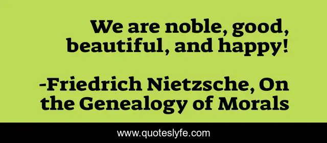 "Friedrich Nietzsche, On the Genealogy of Morals Quotes." Quoteslyfe.com, 2025. Sat. 06 Dec. 2025. <https://www.quoteslyfe.com/quote/We-are-noble-good-beautiful-and-happy-165197>.