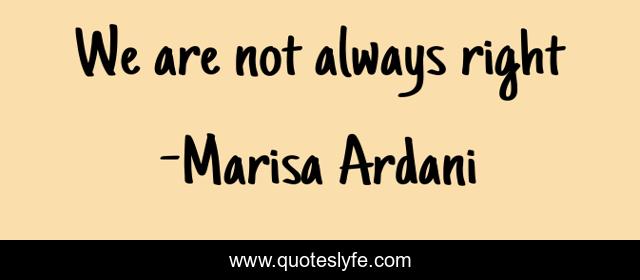 "Marisa Ardani Quotes." Quoteslyfe.com, 2025. Fri. 05 Dec. 2025. <https://www.quoteslyfe.com/quote/We-are-not-always-right-172690>.