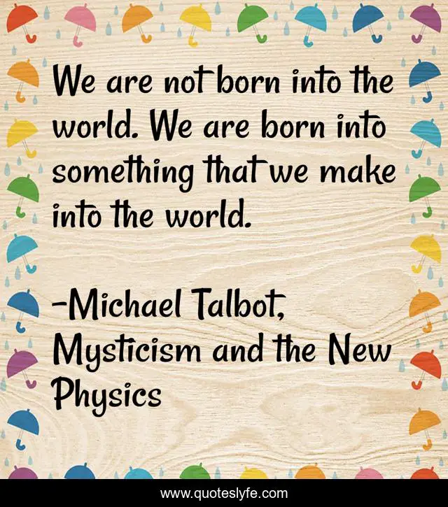 "Michael Talbot, Mysticism and the New Physics Quotes." Quoteslyfe.com, 2025. Sat. 06 Dec. 2025. <https://www.quoteslyfe.com/quote/We-are-not-born-into-the-world-41858>.