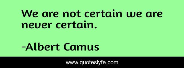 "Albert Camus Quotes." Quoteslyfe.com, 2025. Sat. 06 Dec. 2025. <https://www.quoteslyfe.com/quote/We-are-not-certain-we-are-never-263370>.