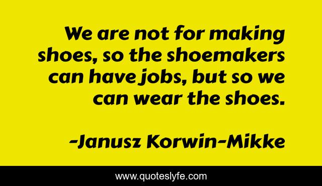 This page presents the quote "We are not for making shoes, so the shoemakers can have jobs, but so we can wear the shoes.". Author of this quote is Janusz Korwin-Mikke. This quote is about employment, free-market, consumers, korwin-mikke,.