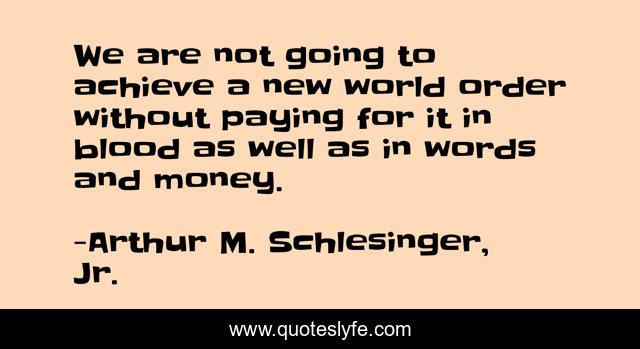This page presents the quote "We are not going to achieve a new world order without paying for it in blood as well as in words and money.". Author of this quote is Arthur M. Schlesinger, Jr.. This quote is about world, blood, words,.