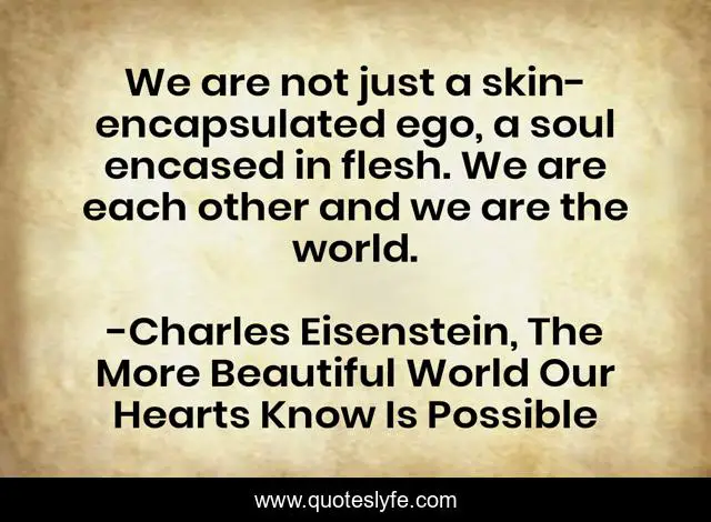 "Charles Eisenstein, The More Beautiful World Our Hearts Know Is Possible Quotes." Quoteslyfe.com, 2025. Fri. 05 Dec. 2025. <https://www.quoteslyfe.com/quote/We-are-not-just-a-skin-encapsulated-215125>.