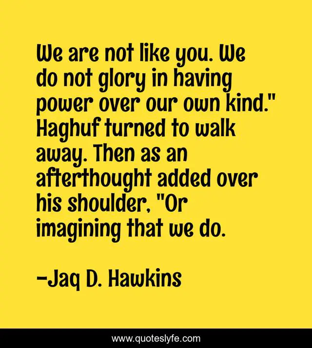 "Jaq D. Hawkins Quotes." Quoteslyfe.com, 2025. Fri. 05 Dec. 2025. <https://www.quoteslyfe.com/quote/We-are-not-like-you-We-do-102833>.