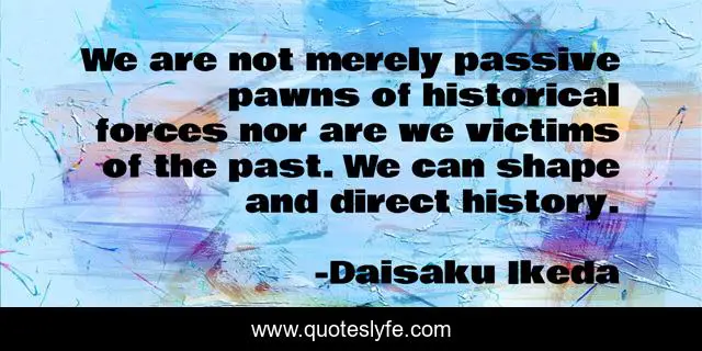 This page presents the quote "We are not merely passive pawns of historical forces nor are we victims of the past. We can shape and direct history.". Author of this quote is Daisaku Ikeda. This quote is about past, shape, historical,.