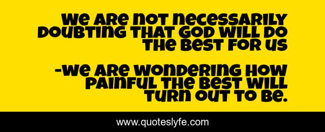"we are wondering how painful the best will turn out to be. Quotes." Quoteslyfe.com, 2025. Sun. 07 Dec. 2025. <https://www.quoteslyfe.com/quote/We-are-not-necessarily-doubting-that-God-10657>.