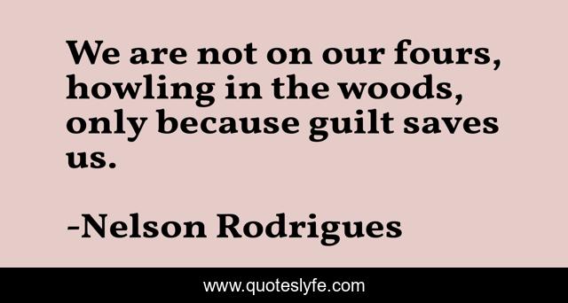 This page presents the quote "We are not on our fours, howling in the woods, only because guilt saves us.". Author of this quote is Nelson Rodrigues. This quote is about guilt, woods, salvation, howl,.