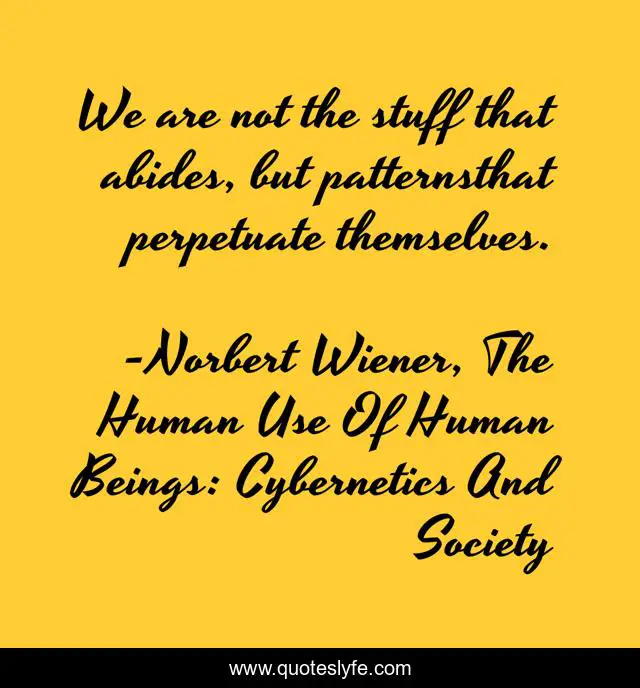 "Norbert Wiener, The Human Use Of Human Beings: Cybernetics And Society Quotes." Quoteslyfe.com, 2025. Fri. 05 Dec. 2025. <https://www.quoteslyfe.com/quote/We-are-not-the-stuff-that-abides-39505>.