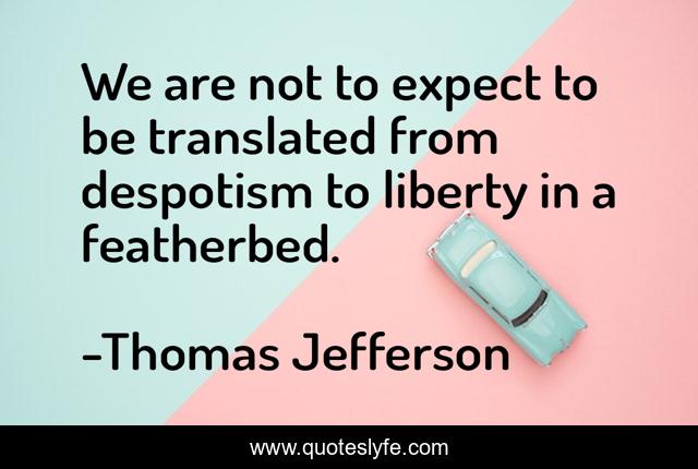 This page presents the quote "We are not to expect to be translated from despotism to liberty in a featherbed.". Author of this quote is Thomas Jefferson. This quote is about tyranny, government, freedom, hard, liberty, despotism, easy, effort, change,.