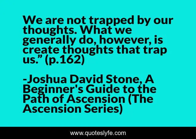 This page presents the quote "We are not trapped by our thoughts. What we generally do, however, is create thoughts that trap us.” (p.162)". Author of this quote is Joshua David Stone, A Beginner's Guide to the Path of Ascension (The Ascension Series). This quote is about ascension, beginner-s-guide, thoughts, trapped,.