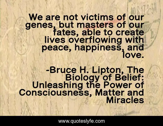"Bruce H. Lipton, The Biology of Belief: Unleashing the Power of Consciousness, Matter and Miracles Quotes." Quoteslyfe.com, 2025. Mon. 08 Dec. 2025. <https://www.quoteslyfe.com/quote/We-are-not-victims-of-our-genes-230500>.