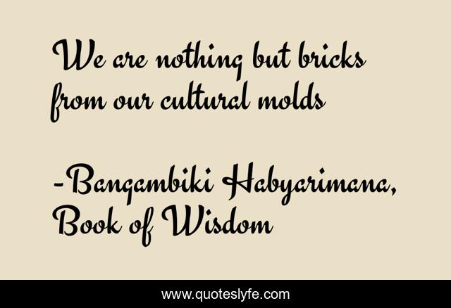 This page presents the quote "We are nothing but bricks from our cultural molds". Author of this quote is Bangambiki Habyarimana, Book of Wisdom. This quote is about culture, free-will, destiny, fate, culture-identity,.