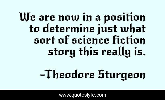 This page presents the quote "We are now in a position to determine just what sort of science fiction story this really is.". Author of this quote is Theodore Sturgeon. .