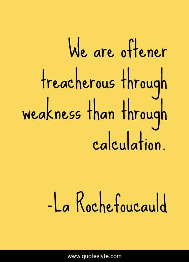 This page presents the quote "We are oftener treacherous through weakness than through calculation.". Author of this quote is La Rochefoucauld. This quote is about cruelty, wickedness,.