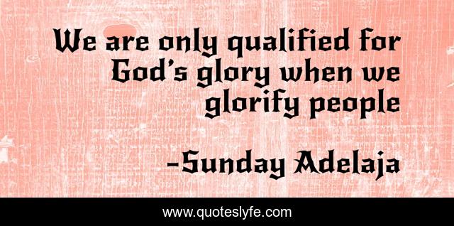 This page presents the quote "We are only qualified for God’s glory when we glorify people". Author of this quote is Sunday Adelaja. This quote is about love, people, money, principles, employment, worship, destiny, service, god,.