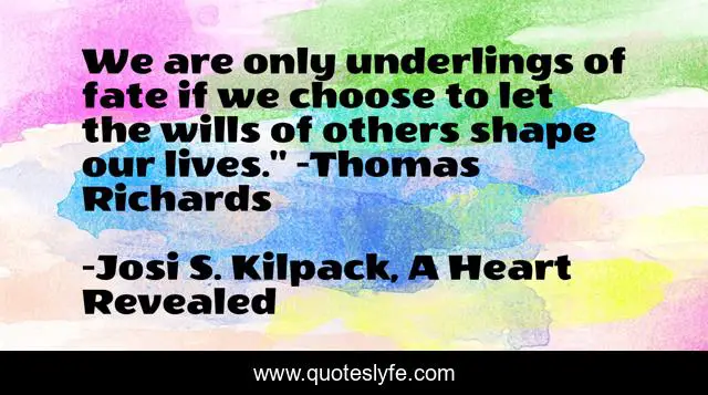 This page presents the quote "We are only underlings of fate if we choose to let the wills of others shape our lives." -Thomas Richards". Author of this quote is Josi S. Kilpack, A Heart Revealed. This quote is about enthusiasm, life-and-living, inspirational,.
