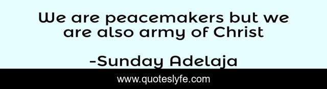 This page presents the quote "We are peacemakers but we are also army of Christ". Author of this quote is Sunday Adelaja. This quote is about national-transformation, christ, pacemaker, army,.