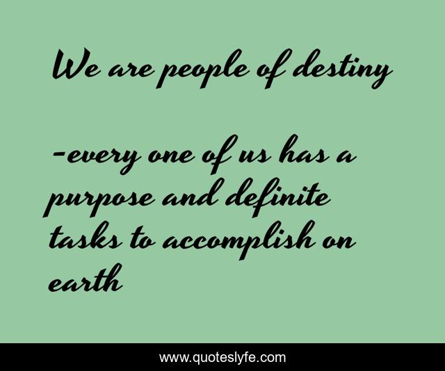 "every one of us has a purpose and definite tasks to accomplish on earth Quotes." Quoteslyfe.com, 2025. Sat. 06 Dec. 2025. <https://www.quoteslyfe.com/quote/We-are-people-of-destiny-46940>.