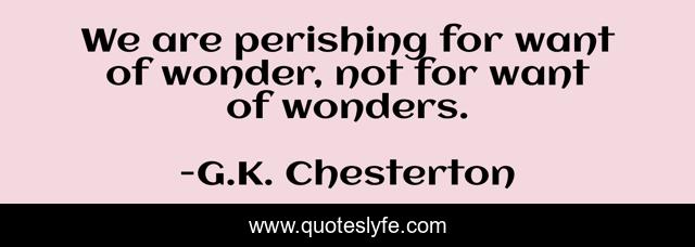 "G.K. Chesterton Quotes." Quoteslyfe.com, 2025. Mon. 08 Dec. 2025. <https://www.quoteslyfe.com/quote/We-are-perishing-for-want-of-wonder-179641>.