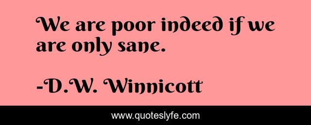 This page presents the quote "We are poor indeed if we are only sane.". Author of this quote is D.W. Winnicott. This quote is about sociology, psychology, sanity, society, social-norms, infp,.