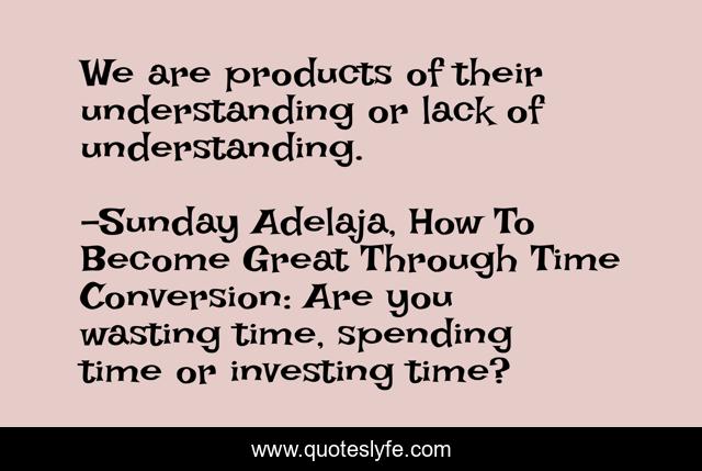 "Sunday Adelaja, How To Become Great Through Time Conversion: Are you wasting time, spending time or investing time? Quotes." Quoteslyfe.com, 2025. Fri. 05 Dec. 2025. <https://www.quoteslyfe.com/quote/We-are-products-of-their-understanding-or-39028>.