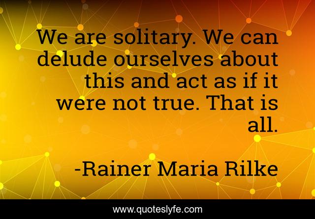 This page presents the quote "We are solitary. We can delude ourselves about this and act as if it were not true. That is all.". Author of this quote is Rainer Maria Rilke. This quote is about solitude, reality,.