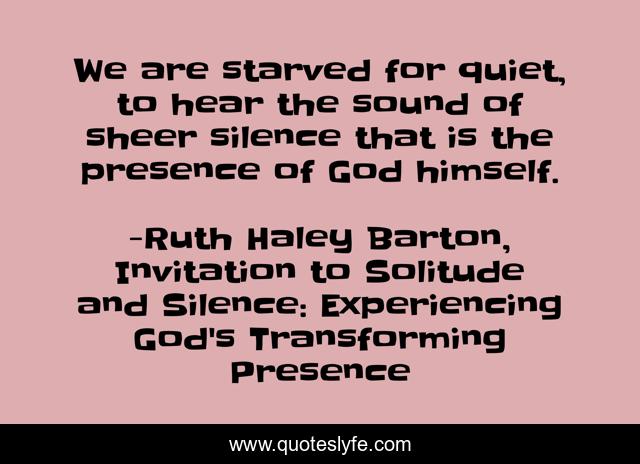 This page presents the quote "We are starved for quiet, to hear the sound of sheer silence that is the presence of God himself.". Author of this quote is Ruth Haley Barton, Invitation to Solitude and Silence: Experiencing God's Transforming Presence. .
