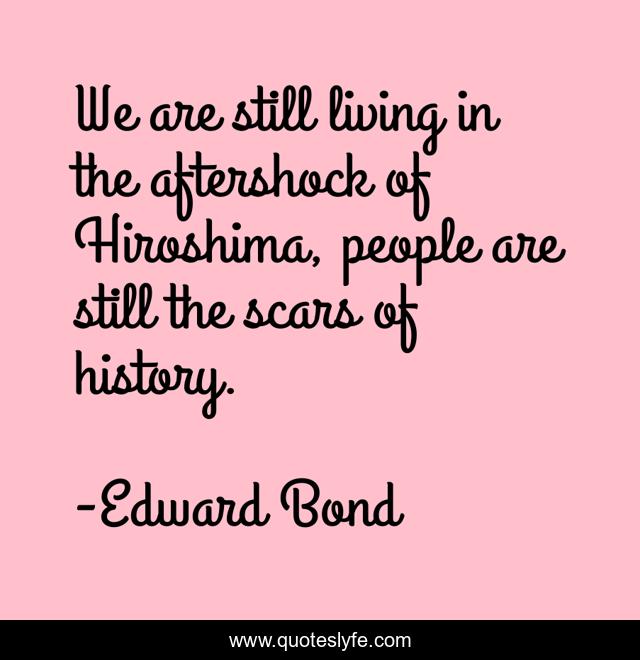 This page presents the quote "We are still living in the aftershock of Hiroshima, people are still the scars of history.". Author of this quote is Edward Bond. This quote is about living, scars, people,.