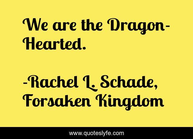 "Rachel L. Schade, Forsaken Kingdom Quotes." Quoteslyfe.com, 2025. Fri. 05 Dec. 2025. <https://www.quoteslyfe.com/quote/We-are-the-Dragon-Hearted-88310>.
