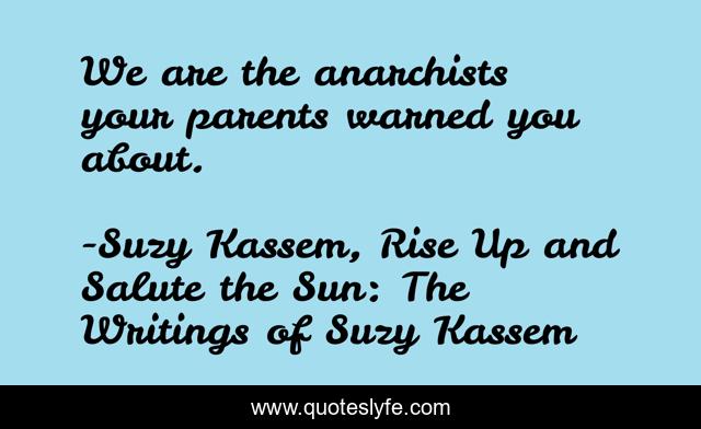 "Suzy Kassem, Rise Up and Salute the Sun: The Writings of Suzy Kassem Quotes." Quoteslyfe.com, 2025. Sun. 07 Dec. 2025. <https://www.quoteslyfe.com/quote/We-are-the-anarchists-your-parents-warned-251672>.