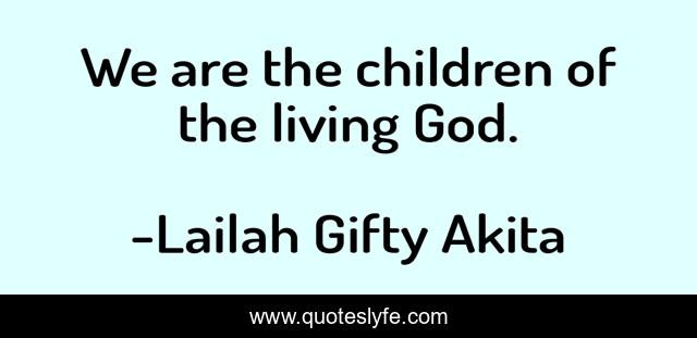 This page presents the quote "We are the children of the living God.". Author of this quote is Lailah Gifty Akita. This quote is about living-god, religion, christian, children,.