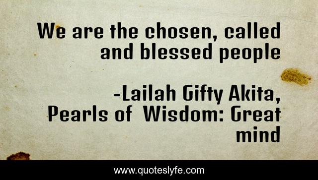 "Lailah Gifty Akita, Pearls of Wisdom: Great mind Quotes." Quoteslyfe.com, 2025. Mon. 08 Dec. 2025. <https://www.quoteslyfe.com/quote/We-are-the-chosen-called-and-blessed-169177>.