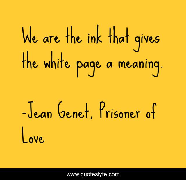 "Jean Genet, Prisoner of Love Quotes." Quoteslyfe.com, 2025. Sun. 07 Dec. 2025. <https://www.quoteslyfe.com/quote/We-are-the-ink-that-gives-the-125315>.