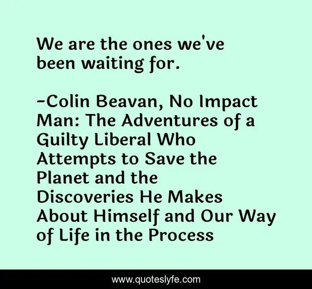 "Colin Beavan, No Impact Man: The Adventures of a Guilty Liberal Who Attempts to Save the Planet and the Discoveries He Makes About Himself and Our Way of Life in the Process Quotes." Quoteslyfe.com, 2025. Mon. 08 Dec. 2025. <https://www.quoteslyfe.com/quote/We-are-the-ones-we-ve-been-14560>.